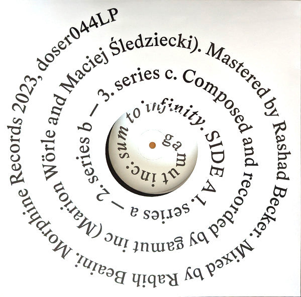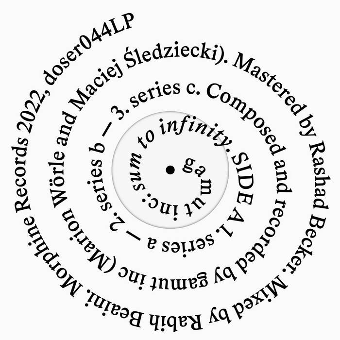 The sum to infinity of a sequence is the sum of an infinite number of terms in the sequence. It is only possible to compute this sum if the terms of a sequence converge to zero. "sum to infinity" is also the second release from gamut inc, the retro-futuristic ensemble around composers and curators Marion Wörle and Maciej Sledziecki.