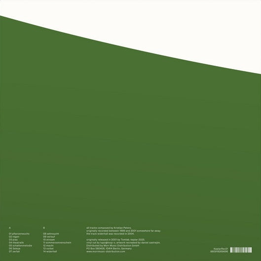 All tracks composed by Kristian Peters. Originally recorded between 1999 and 2001 somewhere far away. The track 'Widerhall' was recorded in 2004.